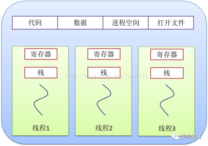 后来,随着计算机的发展,对CPU的要求越来越高,进程之间的切换开销较大,已经无法满足越来越复杂的程序的要求了。于是就发明了线程,线程是程序执行中一个单一的顺序控制流程,是程序执行流的最小单元,是处理器调度和分派的基本单位。一个进程可以有一个或多个线程,各个线程之间共享程序的内存空间(也就是所在进程的内存空间)。一个标准的线程由线程ID、当前指令指针(PC)、寄存器和堆栈组成。而进程由内存空间(代码、数据、进程空间、打开的文件)和一个或多个线程组成。